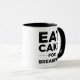 Coma o bolo para a caneca do pequeno almoço que caracteriza um design moderno, fresco.