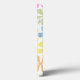 Um design de padrão de superfície de abstrato com estilo retro divertido e divertido em uma mistura clara de cor amarela, rosa, azul, limão-verde e laranja em um fundo branco.