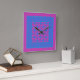 Um Relógio de Parede na moda quadrado com uma mistura de Bolinhas Magenta, Roxo, Azul Brilhante e Turquesa, e uma manta de retalhos Faux. Parte da coleção Posh & Painterly 'Magenta Magic'.