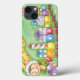 Ilustração Vintage Imagem de Natal Feliz com uma lagarta vestindo uma coroa, arco e bolinhas de chapéu e carregando de Papai Noel. A feliz e sorridente lagarta parece um trem colorida de locomotiva arco-íris.