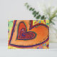 Um pequeno coração roxo é fechado por um coração vermelho que está dentro dos corações laranja. Os corações são esboçados em verde, roxo e vermelho. O fundo de aquarela é um amarelo macio com pontos de confete coloridos. Uma camada clara de ouro e brilho vermelho traça as bordas do coração. Os corações de riso são um detalhe da pintura "Ria" da Palavra Inspiracional. Personalize este convite com seu próprio texto e imagens usando a opção Personalizar Ti para fazer seus próprios convites especiais! Produto da venda do presente concurso de apoio à DonnaBellas Angels, sem fins lucrativos 501(c)3.