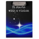 Esta prancheta diz que "começa com uma visão".