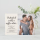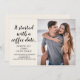 "Como começou" o anúncio de fotos de noivado. Personalize com sua foto e texto. Nosso texto diz, "Começou com um café... Agora tenho um anel no meu dedo." Como começou sua relação? Entre em contato comigo para obter ajuda no fazer do seu ajustado de histórias neste cartão.