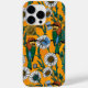 Padrão sem costura vetor desenhado à mão com aves que comem abelhas e borboletas azuis comuns em flores margaridas