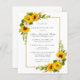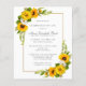 A comemoração elegante de um convite para a vida apresenta dois girassóis amarelos e arranjos florais de margarida branca decorando um quadro de ouro. O nome da pessoa morta está escrito em um texto tradicional. Todo o texto pode ser facilmente editado para criar uma lembrança pessoal.