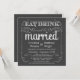 Convites de Casamento Elegantes em Lousa -- Volutas, espirais e moldura rústica sofisticada em lousa cinza-ardósia. Adicione seus nomes e informações do casamento neste modelo fácil de usar. Escrita à giz em estilo vintage e tipografia com letra cursiva caprichosa - altere os estilos de letra para refletir o tema de casamento retrô formal ou semi-formal. O estilo de convite de lousa quadrada é perfeito para casamentos modernos e atuais com um toque divertido de charme sofisticado para a noiva e o noivo tradicionais. NOTA: O design deste produto está configurado apenas para cartões quadrados, que exigem postagem extra. Outros tamanhos e versões totalmente personalizáveis estão disponíveis na loja. Por favor, entre em contato conosco para obter ajuda com a personalização se você precisar de espaço adicional para os detalhes do seu casamento.