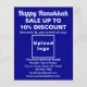 Feliz Hanukkah! Desejando alegria, paz e abençoando este festival de luzes. Feriado para comemorar este mês de dezembro e anunciar também o seu negócio. Folheto personalizável com venda de Chanucá, seu nome comercial e outras informações de sua empresa, um material de marketing que você pode usar para atrair mais clientes. Personalize-o e distribua-o para atrair mais clientes para comprar seus produtos ou clientes para gostar de seus serviços. As cores design são textos claros, azuis e brancos sobre fundo azul. Para personalizar este folheto, especifique o desconto percentual que você oferecerá e as datas de venda. Carregue também o logotipo da sua empresa, digite seu nome, endereço, número de telefone, e-mail e site ou a página de mídia social da sua empresa. Verifique a aparência nos lados frontal e traseiro após digitar textos e carregar logotipo. Se a aparência lhe agrada, você pode colocar seu pedido agora. Se você precisar redimensionar e mover os textos e o logotipo para o ajustado neste folheto ou no tamanho que você escolher, mude na ferramenta design. Você também pode alterar a cor do plano de fundo, a cor da fonte e o estilo da fonte na ferramenta design. Feliz Hanukkah! Desejando mais vendas neste feriado.