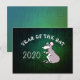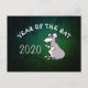 Ilustração fofa de um rato em estilo de história em quadrinhos com 2020 e "Ano do Rato" para personalizar se desejar em imagem metálica verde como fundo. Design em cartão postal horizontal. Cartão de cumprimentos, produtos artesanais e mais...