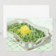 Ilustração antiga de comida e bebidas com prato de servir padrão de rosa da Vovó com feijão verde e manteiga.
