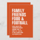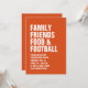 Com uma tipografia branca ousada, este convite jante de Ação de Graças laranja é facilmente personalizado e dá o tom para um banquete divertido e casual do dia da turquia. O texto diz "amigos da família, comida e futebol", mas pode ser mudado para ler o que quiser! Excelente para a Ação de Amizade também!