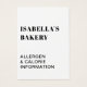Comida Informações sobre alergia Caloria Cartão de