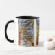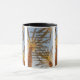 Esta caneca mostra como posso rezar sobre uma bela foto de palmeiras sob claros céus azuis. A jante e o manípulo são vidrados em cores compatíveis, disponíveis em micro-ondas e máquinas de lavar louça de tamanho 11 onças ou 15 onças, construindo cerâmica segura.