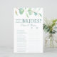 Este Eucalipto botânico Como Conhece As Noivas? A folha de jogos de Chá de panela LGBTQ trará muito diversão e risos ao seu chá de casamento! A página é elegante e encantadora. Seu belo design com um eucalipto no estilo de aquarela contemporâneo é perfeito para qualquer casamento. Para fazer deste jogo, basta selecionar Personalizar este modelo e digitar os nomes e as iniciais das noivas.