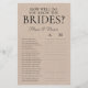 É Assim Que Conheces As Noivas? A folha de jogos de Chá de panela LGBTQ trará muito diversão e risos ao seu chá de casamento! A página é elegante e moderna. Seu simples design com fontes pretas no papel de artesanato é perfeito para qualquer casamento. Para fazer deste jogo, basta selecionar Personalizar este modelo e digitar os nomes e as iniciais das noivas.