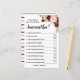 Como você conhece bem o jogo de Chá de panela Floral da Noiva Marsala? Mude o texto para design. Para personalização adicional (cor da fonte, estilo da fonte ), clique em personalizar, role para baixo e clique no link "Editar usando a ferramenta Design". ** Verifique a coleção de todos os designs correspondentes ** HOW TO PLAY: Os convidados respondem às perguntas sobre a noiva, depois de preencher todas as suas respostas, a noiva responde a todas as perguntas e convidados que irão marcar as caixas certas que eles pensam corretamente e escrever o total de respostas corretas no final. A pessoa com as respostas mais corretas ganha.