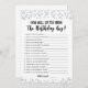 Adquira este jogo editável e desfrute de alta qualidade Como conhece o cartão de criança de aniversário para o seu evento? Este é um modelo de jogo, você pode mudar as perguntas como quiser! Design de prata confetti.