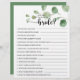 Assim você sabe que o jogo da noiva de chá de panela é uma atividade perfeita para uma celebração minimalista de chás de panela. A design apresenta galhos e folhas botânicas elegantes e desenhadas a aquarela e desenhadas à mão.