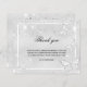Um cartões de agradecimentos de simpatia simples e elegante com a foto. Um fundo metálico prateado sujo, uma estrutura branca, poeira brilhante fraca e borboletas na frente e no verso. Personalize e adicione sua nota de agradecimento. Texto preto.