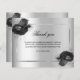 Um cartões de agradecimentos de simpatia simples e elegante com a foto. Um fundo falso prateado, uma falso armação prateada e florais escuros. Personalize e adicione sua nota de agradecimento.