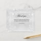 Um cartões de agradecimentos de simpatia simples e elegante com a foto. Um fundo metálico prateado falsa, uma armação branca, brilhos falsos. Personalize e adicione sua nota de agradecimento. Texto preto.