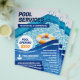 Faça um salto com este vibrante design de folheto inspirado no verão criado apenas para as empresas de serviços de piscina! Perfeito para promover serviços de piscina residenciais e comerciais, este folheto divertido e atraente apresenta um plano de fundo de água de piscina refrescante e seções totalmente editáveis — incluindo uma bolha de oferta especial ousada, uma lista de serviços, uma introdução curta da empresa, destaques de assistência à piscina em destaque e informações de contato fáceis de ler, como o seu número de telefone, site e localização. Quer você os entregue em bairros ou os posta em negócios locais, este folheto é uma maneira ensolarada e profissional de aumentar sua marca e trazer novos clientes.