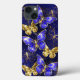 Composição de borboletas luxuosas de safira e joias de ouro em fundo azul texturizado.
