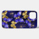 Composição de borboletas luxuosas de safira e joias de ouro em fundo azul texturizado.