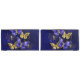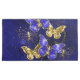 Composição de borboletas luxuosas de safira e joias de ouro em fundo azul texturizado.