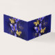 Composição de borboletas luxuosas de safira e joias de ouro em fundo azul texturizado.