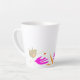 Essa caneca apresenta na sua fronteira inferior um conjunto de lâminas e flores em bege, magenta, vermelho e laranja sobre o fundo branco.