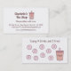 Um chá de bolha compra cartão de visita com um rabisco de chá de leite de bolha com muitas pérolas de boba. O slogan diz "artesanal com amor", que você pode mudar para a preposição exclusiva de vendas do seu compro. Ao contrário, há um cartão de prêmios de fidelidade, projetado em forma de bobinas, para recompensar clientes que comprar 9 chás de bolha para receber 1 bebida grátis.