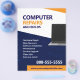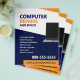 Stand out with this Computer Repairs, New Builds & Maintenance Flyer Template — a bold and modern design in navy blue and orange that instantly grabs attention. Perfect for tech professionals and repair shops, this customizable flyer lets you easily showcase your list of services, contact information, and a short company write-up to tell customers what makes you unique. Add your email and website for quick connections and keep your business looking sharp and professional. Whether you specialize in computer repairs, custom PC builds, or system maintenance, this flyer template helps you promote your services with style and confidence.