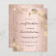 Um fundo rosa dourado decorado com vegetação de eucalipto e pó de brilho falso. Personalize e um nome e detalhes da cerimônia. Letras de cor preta.
