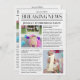Torne qualquer primeiro aniversário um evento digno de manchete com este cartão de notícias de última hora personalizável. Com um design criativo no estilo de jornal, este cartão destaca momentos marcantes e fotos preciosas do grande dia. Perfeito como cartão de anúncio ou agradecimento, oferece uma maneira única de compartilhar a alegria da celebração do primeiro aniversário com os entes queridos. Capture a magia, o riso e as memórias em um objeto que será valorizado por anos.