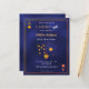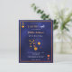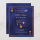 Um convite de aniversário para a noite do cassino em azul e ouro marinho. A cor azul é irregular. Um cartão de jogo como quadro. Modelos para informações sobre a sua parte. 1 folha = 1 convite impresso de borda a borda.