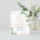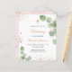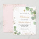 Um fundo branco decorado com verde de eucalipto e pó de ouro falso. Personalize e o nome e os detalhes da cerimônia. Letras pretas e ouros coloridas. Traseira: fundo cor-de-rosa pincelado com poeira brilhante de falso ouro.