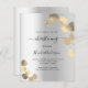 Um batismo moderno e elegante, um convite batizante, neutro em termos de gênero. Fundo metálico de aspecto fino prateado decorado com ouro eucalipto, prigs. Personalize e adicione um nome e detalhes. Letras pretas coloridas.