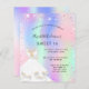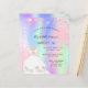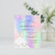 Um convite moderno, na moda e glamouroso para uma doce festa de aniversário 16, 16. Um fundo holográfico cor-de-rosa, roxo e verde-menta, com brilho rosado sujo, faíscas e um vestido branco. O nome é escrito com um moderno estilo escrito à mão. Personalize e adicione os detalhes da sua festa.