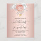 Para um batizado elegante, batismo, celebrando uma menina. Um fundo metálico rosa dourado falso. Decorados com ouro rosa e flores brancas, rosas e uma cruz de ouro falsa. Personalize e adicione o nome da criança e os detalhes.