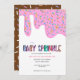 Convites de Chá de Bebê com Gota de Glacê Rosa Doce e confeitos e chocolate no verso.