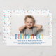 Este convite fotográfico mostra a foto do aniversariante, junto com letras coloridas divertidas e confetti. Whimsical e brilhante, esta design é perfeita para o aniversário dos seus filhos.