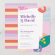 Um convite de casamento colorido e contemporâneo numa paleta de cores novas.