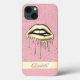 Lábios de gotejamento metálico, e confete de ouro em fundo cor-de-rosa e seu nome.