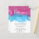 Um brilhante e colorido Sexo Bebê Revela Convite de festas. Em um fundo branco, a fumaça azul e rosa e o confete brilhante cai lentamente em volta do texto da tipografia que lê Baby Your Surname (Seu sobrenome de Bebê). Personalize adicionando os detalhes do evento de cheio à frente e atrás.