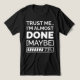 Engenheiros conhecem a luta — cada projeto parece estar quase pronto... até que não esteja. Esta camiseta engraçada "Confie em mim estou quase pronto" com um gráfico de bar de carga inteligente é feita para engenheiros, gerentes de projetos e estudantes de engenharia que vivem na terra dos prazos e consertos de última hora. Um presente de excelente para qualquer pessoa no STEM que esteja sempre depurando, otimizando ou colocando os toques finais. Vista-o para a aula, o escritório, o laboratório, ou a próxima reunião do projeto para uma risada que todos os engenheiros terão.