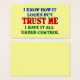 Aqui se lê, "Eu sei como é, mas, acredite, tenho tudo sob controle," em letras multicoloridas e uma fonte ligeiramente desfocada que sugere que pode ser qualquer coisa menos "tudo sob controle".