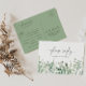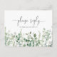 Este cartão postal de confirmação de escolha de menu de eucalipto verde minimalista é perfeito para um casamento moderno. O design apresenta ramos e folhas de eucalipto botânico elegante desenhado à mão com aquarela.