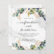 Impressão de mármore como fundo decorado com verde de eucalipto e folhas de ouro. Uma cruz ouro. Personalize e um nome e detalhes da cerimônia.