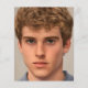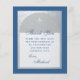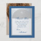 Um cartões de agradecimentos de confirmação azul para um menino. Em um fundo retangular azul clássico, ele tem um arco de folha de alumínio azul falso que tem dentro azul sobre fundo branco. As palavras "Obrigado" e o nome são escritos num guião caligráfico elegante; o resto em bonés. No verso há uma foto marcante de um garoto, de Pixabay, que é gerado por computador (não uma pessoa real) e gratuito para uso comercial.
