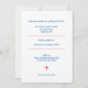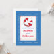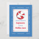 Um convite de confirmação para seu filho em azul e vermelho. O Espírito Santo, representado por uma pomba branca, está no centro de um círculo sobre os detalhes do convite. Personalize com o nome do seu filho. Os presentes do Espírito Santo estão preparando o convite. O verso mostra todos os detalhes do evento.